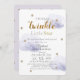 O convite para chá de fraldas virtual "esta pequena estrela giratória e girinhosa" apresenta um fundo branco com estrelas brilhantes douradas falsas e nuvens roxas lavandas lisas. O verso apresenta padrões de estrelas brilhantes douradas em fundo de lavanda leve. Altere a cor de fundo e personalize para suas necessidades. Você pode encontrar mais produtos correspondentes na minha loja.