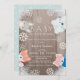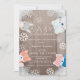 Esta bela e rústica carta de convite virtual para chás de fraldas apresenta um fundo de madeira rústica com animais de floresta/inverno que são uma raposa, um coelho, um urso polar, um panda vermelho, flocos de neve e a neve nos cantos. O verso apresenta um fundo azul bebê com padrões brancos de neve. Personalize-o para as suas necessidades. Você pode encontrar mais produtos para urso polar na minha loja.