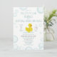 Bubble tematizou o chá de fraldas virtual neutro com temas distanciados por correio com pato de borracha amarelo no centro.