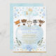 Convite "chá de fraldas virtual" bonito com ilustração aquarela de adoráveis amigos da floresta e corações mágicos azuis e dourados