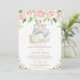 Personalize este chá de fraldas de elefante floral, cor-de-rosa e branco, por convite por correio, de forma fácil e rápida, basta pressionar o botão personalizar para reorganizar e formatar o estilo e posicionamento do texto. Este chá de fraldas chic por correio é perfeito para aqueles que vivem uma longa distância de entes queridos, mas que ainda querem fazer com que seja especial para a mãe ou os pais, ao chutá-los com amor e presentes. Itens correspondentes disponíveis no repositório! c) O Feliz Cat Studio
