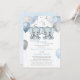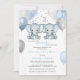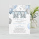 Este adorável convite para chás de fraldas apresenta elefantes gêmeos azuis e cinzas com balões e confete. A parte traseira apresenta aquarela azul macia. Facilmente personalizado para seu evento clicando em "Personalizar".