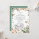 Amiga da selva para convidar convidados para se juntar ao seu chá de fraldas virtual para quando você não pode se juntar pessoalmente. Este design tem uma mãe fofa e um elefante bebê com flores e folhagem e texto facilmente personalizado. Um fundo verde de sábio coordenado está atrás. Você também pode alterar as fontes e as cores do texto, se desejar, através da opção Clique para personalizar mais, bem como as cores de fundo de cada lado.