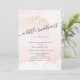 Este na moda e elegante convite para chás de fraldas virtuais/online/zoom "um pequeno amor está a caminho" apresenta um fundo cor-de-rosa pincelado em aquarela com falsa dourada esplatters e letras em preto. O verso apresenta um fundo branco com listras cor-de-rosa pinceladas. Personalize-o para as suas necessidades. Você pode encontrar produtos correspondentes na minha loja.