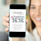 Um belo convite para chás de fraldas virtuais para gêmeos e meninos com "Dois Docinhos Doce Estão a Caminho" escrito em tipografia moderna de cinza mole e um roteiro de na moda, e aquarelas cor-de-rosa e azul pastel de elefantes bebês. Personalize o nome da futura mãe e os detalhes do chá virtual em uma simples tipografia de cinza.