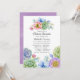 Vibrante aquarela convite virtual online para chás de fraldas de longa distância com flores rosa e roxo, suculentes e folhas de eucalipto.