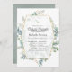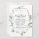 Silvicultura florestal selvagem eucalipto herbário virtual em linha convite para chá de fraldas a longa distância com moldura geométrica dourada e lavagem com aquarela prateada inversa.