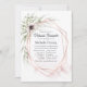 Convite virtual on-line de longa distância para chás de fraldas com flores anêmonas e folhas de eucalipto em um quadro geométrico de rosa - cobre.