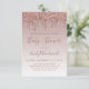Este convite de chá de fraldas virtual de tendência apresenta uma borda de brilho brilhante de falso rosa de ouro em um fundo de rosa ombre. As palavras "Chá de fraldas" e o nome da futura mãe aparecem no roteiro de escrita à mão do rosa escuro, com o texto restante na letra do serif do rosa escuro.