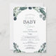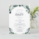 Se vocês não podem se reunir, celebre a futura mãe em um CHÁ DE FRALDAS VIRTUAL online usando um link de conexão com a Internet. O convite apresenta folhas verdes de eucalipto sábio e letras verdes e azuis marinhos acentuadas com buquês florais e tipografia moderna de roteiro para o título. Ideal para um bebê ou chá de fraldas temático neutro em relação ao gênero. Entre em contato com o designer por meio do Zazzle Chat ou makeitaboutyoustore@gmail.com se você quiser que este design seja modificado, em outro produto ou quiser coordenar itens.