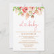 Convites Chá de fraldas Virtual Rosa Rosa Floral Greenery G