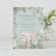 Por vezes, quando não se consegue juntar-se pessoalmente, uma festa virtual através do Zoom é a próxima melhor coisa! Este design tem um encanto de estilo vintage com um elefante bebê bonitinho em gravata azul de pescoço, pingando atrás de uma borda de folhas e flores em tons de verde e cremes. Você pode personalizar o texto facilmente para seus próprios detalhes. Você também pode alterar as fontes e as cores do texto, se desejar, por meio da opção Clique para personalizar mais, bem como do plano de fundo verde de coordenação no verso. Você também pode considerar nosso nome de convidado individual e as folhas de adesivos de endereço para seus envelopes para salvá-los de escrita manual.