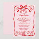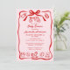Chá de fraldas branco vermelho e rosa com ilustrações lúdicas de rabiscos, perfeito para uma celebração temática de uma menina. Apresentando uma vibrante borda desenhada à mão e arco com ícones de bebês como uma garrafa, pacificador, ursinho de pelúcia e cavalo de balanço, esta fofa design combina a arte moderna do escribble com elementos clássicos de bebê. O fundo cor-de-rosa contrasta maravilhosamente com a ousada linhagem vermelha e os sotaques, enquanto o quadro ondulado, solto, adiciona um sentimento diverso e casual ideal para encontros alegres. Na moda mix de fontes manuscritas dá ao layout um tom pessoal e alegre. Este convite de chá de fraldas feminino é ideal para celebrar uma futura mãe com uma estética doce e desenhada à mão que está em plena tendência com o popular estilo design de rabisco. Disponível como placas impressas ou um download digital instantâneo.