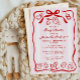 Chá de fraldas branco vermelho e rosa com ilustrações lúdicas e listras verticais, perfeito para a celebração temática de uma menina. Apresentando uma vibrante borda desenhada à mão e arco com ícones de bebês como uma garrafa, pacificador, ursinho de pelúcia e cavalo de balanço, esta fofa design combina a arte moderna do escribble com elementos clássicos de bebê. O fundo cor-de-rosa contrasta maravilhosamente com a ousada linhagem vermelha e os sotaques, enquanto o quadro ondulado, solto, adiciona um sentimento diverso e casual ideal para encontros alegres. Na moda mix de fontes manuscritas dá ao layout um tom pessoal e alegre. Este convite de chá de fraldas feminino é ideal para celebrar uma futura mãe com uma estética doce e desenhada à mão que está em plena tendência com o popular estilo design de rabisco. Disponível como placas impressas ou um download digital instantâneo.