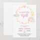 Celebre a chegada de uma doce menina com este convite de chá de fraldas sonhador! Apresentando ilustrações com aquarelas suaves de arco-íris, nuvens, estrelas e um sol brilhante em tons cor-de-rosa e pastel, este convite adiciona um toque mágico à sua celebração. Perfeito para um chá de fraldas de galho, celeste ou de temas brancos. Personalize todo o texto para se adequar aos detalhes do evento.
