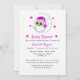 Chá de fraldas divertido convite com adorável coruja de neve fofinha sentada em uma lua crescente sorridente com seu chapéu noturno sobre e cercada por estrelas rosa-cerise. Um convite tão bonito com o script do rico e fácil de personalizar com seus próprios detalhes do chá de fraldas. Adequado para qualquer garoto ou garota do gênero ou uma festa reveladora do gênero basta mudar o texto para atender às suas necessidades sem custo extra