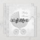 Flocos de neve brancos elegantes com coelho branco e carruagem branca de bebê inverno maravilha chá de fraldas. Este bonito convite para chás de fraldas de inverno em floco de neve branco no inverno é facilmente personalizado para o seu evento, adicionando detalhes de seu evento, estilo de fonte, tamanho de fonte e cor e texto.