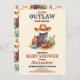 Sale-se por um tempo maravilhoso e selvagem com nosso Convite para Chá de fraldas de Cowboy Oeste Selvagem. Este charmoso design captura o espírito do Velho Oeste, perfeito para celebrar a chegada do seu pequeno cesto. Feito com atenção aos detalhes, esse convite apresenta elementos icônicos ocidentais como chapéus de cowboy, botas e sotaques de madeira rústicos, todos colocados em um pano de fundo da vasta pradaria. As fontes e cores divertidas adicionam um toque de diversão ao tema do vaqueiro. Reúna seus amigos e família enquanto cortamos no entusiasmo para a grande estreia do seu cowboy. Junte-se a nós por um chá de fraldas que promete ser uma aventura selvagem, cheia de alegria, riso, e muito charme ocidental. Levante-se e deixe o Chá de fraldas do Wild West Cowboy Convite ser o pioneiro de uma celebração inesquecível, onde o amor e o espírito cowboy se juntam por um bom tempo! Mal podemos esperar para te ver no rodeio!