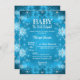 Flocos de neve brancos e azuis lindos, fundo de neve com diamantes falsos tema BABY SHOWER convites. Cartões de convite perfeitos para personalizar com suas informações. Pode ser usado para garoto ou garota. O SMS está frio lá fora. Cartões editáveis; fonte, tamanho, cor.