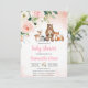 Bem-vindos ao seu pequeno encanto da floresta usando este encantador convite para Chás de fraldas de Woodland Garota. Apresentando uma linhagem de queridos de animais florestais, incluindo ursos, veados, guaxinim, raposa e coruja, acentuados com florais cor-de-rosa suave, verde e poeira de brilho dourado. Esta design é perfeita para uma menina chá com um tema mimétrico de floresta. Crie uma atmosfera mágica e animadora para o seu chá de fraldas com este convite para a floresta que combina encanto rústico e beleza floral suave. BBS242
