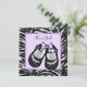 Adoráveis calçados pretas lavandas de convite de chá de uma menina de zebra roxa. Este doce convite para chá de fraldas de zebra roxo é facilmente personalizado para o seu evento, adicionando detalhes do seu evento, estilo de fonte, tamanho de fonte e cor e texto. Observe que todos os designs de convite que você encontrará no Zazzle são gráficos impressos sem joias reais, arcos, levantados, gravados em relevo ou peças ou peças adicionadas.
