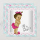 Adorável convite de chá de uma menina afro-americana, rosa e azul-lacrimogênea. Este convite para chás de fraldas cor-de-rosa e azul-lacre é facilmente personalizado para o seu evento, adicionando detalhes do seu evento, estilo da fonte, tamanho e cor da fonte e texto.