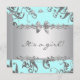 Chamada de chá de menina azul e prateada. Elegantes convites para chás de menina azul-lacrimogênea. Convites de chá azul-prata para bebês.