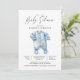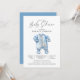 Um belo e brilhante convite de chá de fraldas de roupa de bebê azul para roupa de bebê em um chá de fraldas de menino, em um estilo mínimo moderno de aquarela. Um estilo ousado e único.