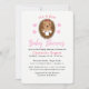 Chá de fraldas de convite divertido com adorável e fofo ouriço-bebê em uma antiga fralda e um padrão de corações amorosos rosa e branco, É uma garota em rosa e rico roteiro rosa "Chá de fraldas" rosa