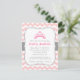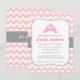 Um convite de chá de menina elegante, chique e elegante. Ele vem com um padrão de chevron rosa e branco e uma princesa tiara. Faixa Cinza com centro branco com efeitos de pontos para indicar os detalhes da parte. Este simples convite com a paleta rosa, branca e cinza é ideal para qualquer um que esteja planejando um chá de fraldas ou precise de um anúncio para a chegada de uma menina recém-nascida. O cartão de convite pode ser facilmente personalizado com os detalhes da sua festa.
