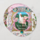 Pergaminho antigo medieval elegante, com pedras coloridas de gema, pérolas brancas, arco cor-de-rosa e animais.design floral com um bebê, estilo de vintage engraçado, e cegonha voadora entre o belo rosa, ouro, rosas vermelhas, flores de primavera e folhas verdes, de Búlgaro Lumini (c).