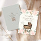 Celebrar um chá de bebê precioso com um cartão de registro de presentes no estilo elegante da mãe. Projetado com sotaques florais cor-de-água, cor-de-rosa, e uma carruagem de bebês, ela complementa perfeitamente um tema clássico de infantários. A delicada folhagem verde-jardim e o pano de fundo verde-seno de cor sólida adicionam um encanto de eterno. Apresentando um roteiro de caligrafia e design de tipografia de na moda, este cartão de registro é uma bela e prática adição à celebração do seu chá de fraldas!
