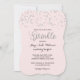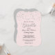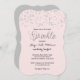 Bonito convite para chás de fraldas de confete cor-de-rosa e prata.