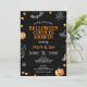 Um adorável convite para o chá dos casais, com elementos do Dia das Bruxas em preto e laranja - um design perfeito para celebrar a ocasião.