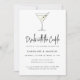Martini Cocktail Ilustração Casais Minimalistas Modernos Convite para Chás de casamento com uma ilustração divertida e um padrão de azeitona no verso.