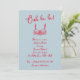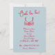 Whimsicala Retro Ooh la la lingerie convite em azul e vermelho, com sutiã desenhada à mão e letra estilo de escrita manual.