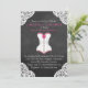 Anúncios personalizados do Chá de Lingerie do Quadro de Chalkboard de Corset Branco, cor-de-rosa.