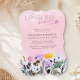 Chá de panela de lingerie de flor selvagem com uma fronteira floral de flores silvestres, em amarelo-lilás rosa e azul. O design fica sentado sobre um fundo cor-de-rosa bonito com névoa macia de lavagem de aquarelas brancas. Se você quiser combinar produtos, por favor, navegue na minha coleção do Wildflower Lawn ou me mande mensagens para adicionar as modelos de design que você precisa.