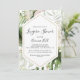 Este convite para chá de lingerie de noivas tropicais de ouro geométrico é perfeito para um chá de casamento de destino. O design apresenta ouro de aquarela pintada à mão e palmeiras verdes e folhas de bananeiras com flores cor-de-rosa amontoadas em buquês, enfeitando um quadro geométrico.