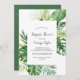 Este convite à lingerie de palma tropical selvagem é perfeito para um evento de praia ou destino. A design apresenta um conjunto exótico de folhas de palmeiras de banana-d'água verde, samambaias, folhagem, plantas botânicas e verde para uma sensação tropical de verão.