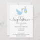 chá de longa distância por convite de uma estrela de névoa azul do bebê apresentando um carregando de cegonha azul giro com entrega de uma estrela de ouro muito especial. Este chá de fraldas elegante, aspergaminho ou casais de longa distância por convite por correio é perfeito para todos os meninos que estão a caminho. Adicione seus detalhes de celebração no texto moderno. Projetado por Thisnotme©