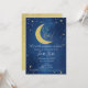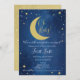 Chá de fraldas da Lua Celestial, convite para anunciar sua nova chegada com lua e estrelas, em marinho e ouro.