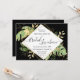 Este elegante convite para o almoço de noiva tropical apresenta uma folhagem exótica com sotaques dourados sobre fundo preto. Um quadro de ouro geométrico moderno destaca o texto negro. As Douradas lâminas acentuam o design botânico e trazem um pouco de sofisticado capricho ao convite. Este convite à oásis da ilha é perfeito para qualquer almoço ao ar livre, praia ou chá de panela tropical.