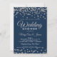 Design de "Chá de casamento" elegante com o design Azul e o texto personalizado do Marinho Glitter Confetti Silver Faux.