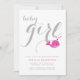 Chá de filhinha de uma fêmea cor-de-rosa, fofinha, fofinha, fofinha. Ele apresenta o texto "Menina" e uma baleia rosa com corações. O dorso inclui um padrão de baleia.