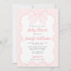 Celebre a chegada do seu pequeno com o nosso convite de chá de bebê. Apresentando um arco cor-de-rosa pincelado no quadro de fita com padrão polkadot no verso, este convite define o tom perfeito para uma celebração de primavera ou verão.