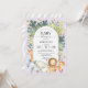 Um convite para chás de fraldas roxo e moderno para meninas. Possui floresta de selva de aquarela e bichos safari com fundo lilático pastel. Os esquemas de cores deste convite para chás de fraldas podem ser usados para acolher uma menina em todas as estações.