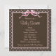 Adoráveis convites para bebês, cor-de-rosa e castanho. Este convite para chás de fraldas cor-de-rosa e castanho é facilmente personalizado para o seu evento, adicionando detalhes do seu evento, estilo de fonte, tamanho de fonte e cor e texto.