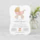 Quando todos não podem estar juntos, comemore a futura mãe de uma longa distância com um chá de fraldas virtual online. Este convite de chá para uma menina rosa apresenta uma cor de água rosa pastel e dourada de uma carruagem de bebê retrô. Você pode personalizar o texto na carruagem (nome do bebê, é uma menina!) ou deixar vazio. "Chá virtual" é escrito em um script de na moda. Uma pequena cor d'água de ursinho rosa e dourado na parte inferior do convite separa blocos de texto dos detalhes da festa. Você pode personalizar facilmente com os detalhes do chá on-line, incluindo um link de acesso on-line, informações do registro, onde enviar cartões e presentes ou a opção de abrir online e enviar posteriormente, e onde obter mais informações.
