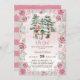 Celebre a chegada de uma bebê precioso com o nosso convite de chá de fraldas encantador! Esta design mostra um adorável veado bebê parado delicadamente perto de um pinheiro coberto de neve, criando uma terra maravilhosa do inverno. O veado bebê é adorado com um arco encantador, acrescentando um toque extra de doçura ao design